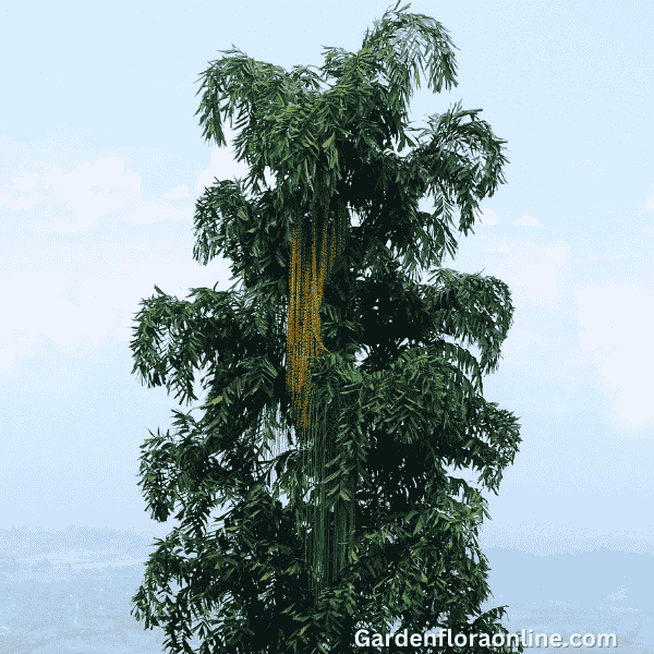 Etymology: The genus name “Caryota” is derived from the Greek word karyotos, meaning date-shaped nut, referring to the fruit’s resemblance to a date. The Latin specific epithet “urens,” meaning stinging, refers to the irritant properties of the fruit pulp, caused by the presence of oxalic acid.